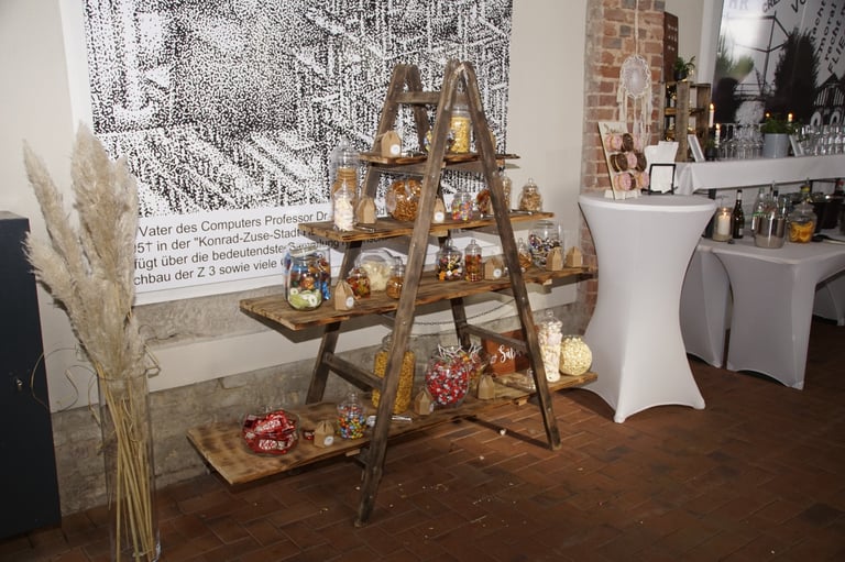 Stilvolle Candy Bars, edle Kerzenständer, rustikale Vasen und praktische Mietmöbel